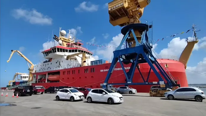 El buque polar cientifico británico, amarrado en el puerto de Montevideo, el 8 de noviembre de 2024. Agenda Malvinas