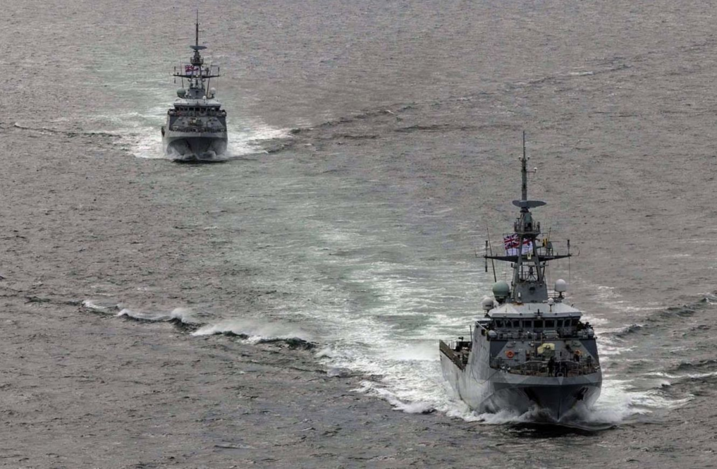 HMS Fort y HMS Medway entrando al puerto militar de las Islas Malvinas. Crédito: Real Armada Británica