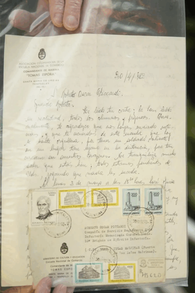 Roberto Oscar Piccardi era un soldado ‘62 que, para la época de Malvinas, tendría que haber estado de baja esperando que incorporen a la clase ‘63, pero el 2 de abril, mientras cumplía cada uno su rol en el Regimiento 7 de La Plata, se enteró que fue convocado a través de un noticiero que estaba viendo junto a otros integrantes del Regimiento en un televisor de la época, pequeño, de unas 20 pulgadas: “Fue sorpresa generalizada para todos”, cuenta a El Destape. Desde esa primera comunicación hasta ahora, siempre estuvieron presentes las cartas. Pero no solamente las suyas, su recorrido para armar el rompecabezas de una explosión en la Isla que había olvidado por completo lo llevó a conectar a soldados con personas que nunca se habían visto y a reconstruir otras historias ocultas.