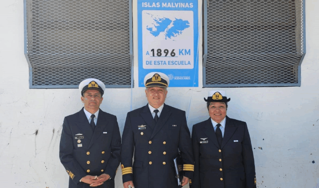 Buenos Aires – Representantes de la Armada Argentina, se hicieron presentes en el acto en el que se descubrió el cartel con la distancia exacta -1896 km- entre las Islas Malvinas y la Escuela Primaria N°9 “Comandante Luis Piedra Buena”, ubicada en el partido de Ituzaingó (provincia de Buenos Aires).
