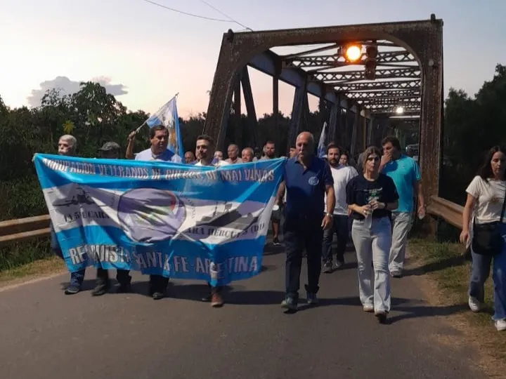 La columna, encabezada por una bandera argentina de gran tamaño, estuvo integrada por excombatientes, vecinos y autoridades de ambas ciudades, entre ellos los intendentes Amadeo Enrique Vallejos y Gonzalo Braidot.