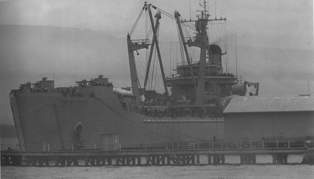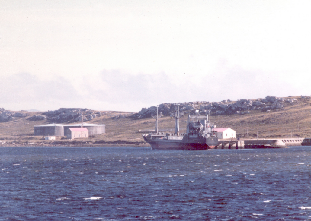 El primer buque en entrar en Puerto Argentino fue el ARA “Cabo San Antonio” que, luego de permitir el desembarco de tropas, retiró los vehículos anfibios empleados en el desembarco del 2 de abril. Posteriormente, se sumaron otros buques de la Armada como el ARA “Isla de los Estados”, que formó parte de la Fuerza de Desembarco y arribó el 4 de ese mes. Este fue seguido por el ARA “Bahía Buen Suceso”, los buques de la empresa estatal ELMA: Formosa, Río Cincel y Río Carcarañá; además del carguero Mar del Norte, de la empresa La Naviera.
