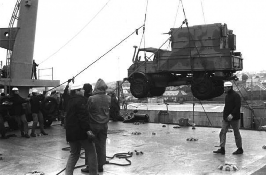 Si bien una gran parte del personal desplegado en nuestras Islas Malvinas llegó por avión, casi la totalidad de la carga lo hizo por vía marítima, a través de buques militares y civiles, marcando un esfuerzo logístico de grandes proporciones que no terminaba con la llegada a las islas: una vez recibida la carga en Puerto Argentino y en localidades de Gran Malvina, como Bahía Fox y Puerto Howard, se iniciaba otro gran esfuerzo para distribuirla entre las tropas desplegadas en medio de un ambiente, por momentos, inaccesible por la ausencia de caminos.