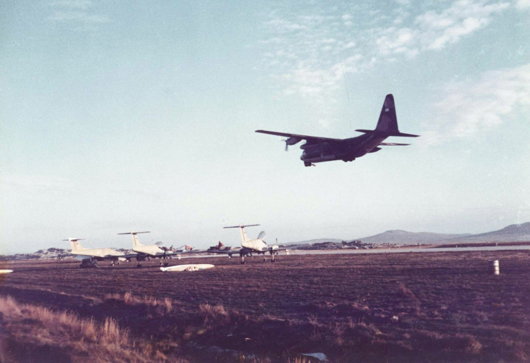 A pesar de los esfuerzos británicos por destruir la pista de Puerto Argentino, ésta quedó operativa durante toda la guerra, registrando la última salida de un C-130 Hércules, en la noche del 13 de junio.