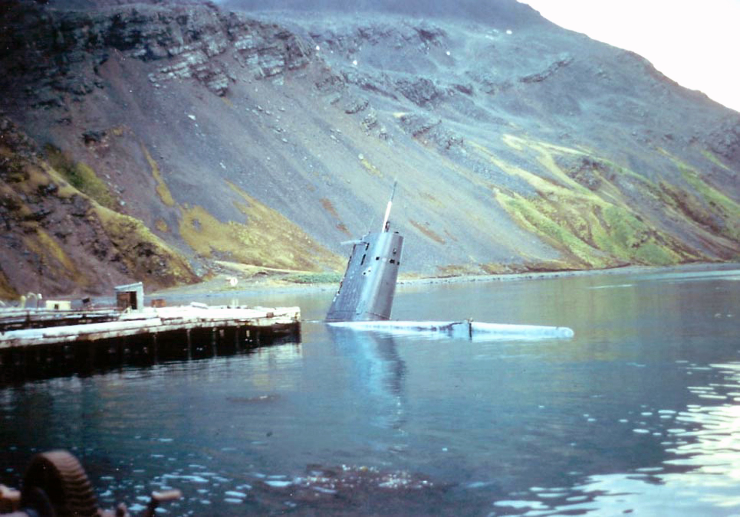 Con apoyo de fuego desde tierra brindado por los Infantes de Marina, el submarino logró llegar hasta el muelle de la estación científica, ya con sus tanques de lastre perforados, por lo que se hundió hasta tocar el fondo y quedar escorado. La idea de repararlo para zarpar por la noche empezó a pensarse, pero los buques británicos abrieron fuego de cañones sobre la posición argentina, mientras desembarcaban al personal de infantería y fuerzas especiales.