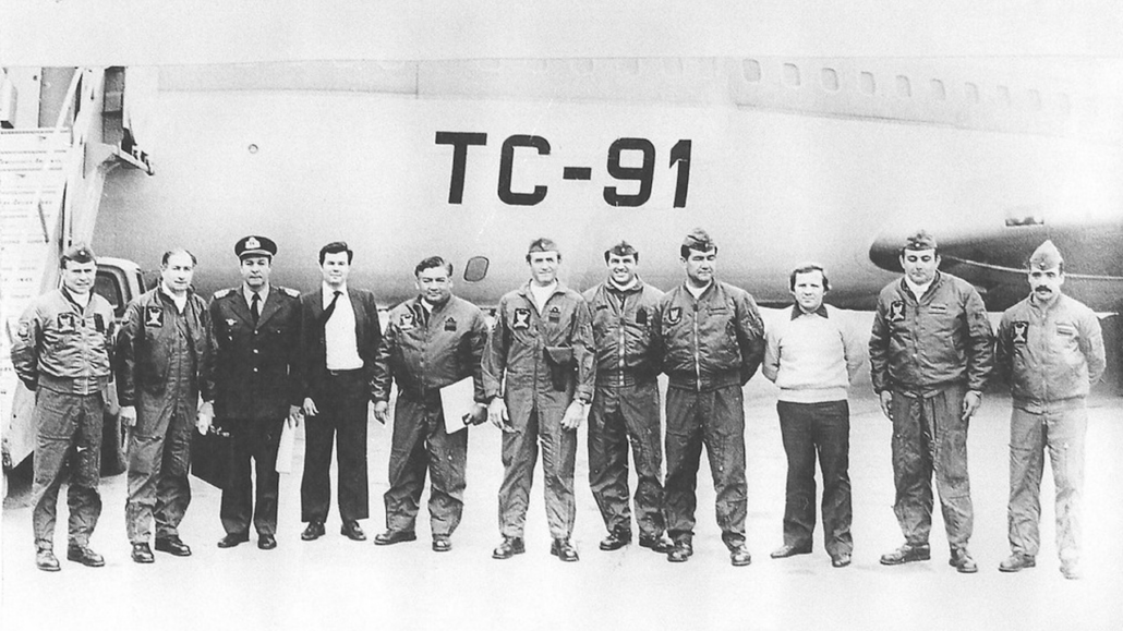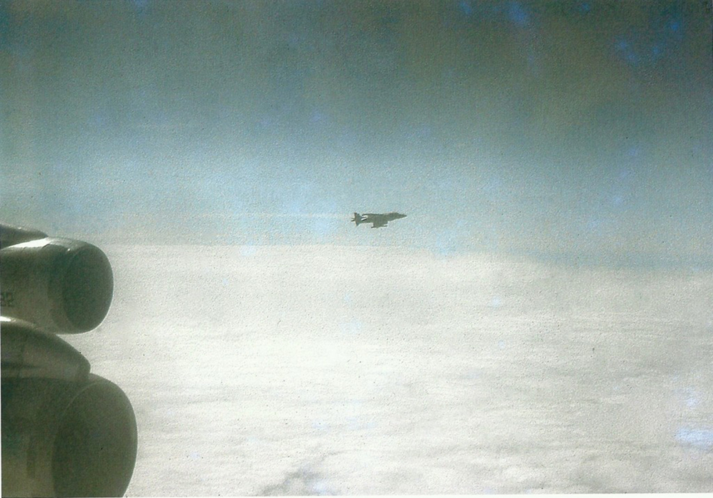 Cuando el Boeing 707 pasó los 30.000 pies de altura, alejándose de la flota, los Sea Harrier se alejaron. Habían pasado 12 eternos minutos en los que volaron custodiados y observados. La tripulación del Boeing 707 estaba conformada por los vicecomodoros Jorge Riccardini (piloto), Joaquín Argüelles Benet (copiloto), Horacio Genolet y Marcelo Conte (tripulantes); Francisco M. López como navegante; los suboficiales principales Andrés Huestey y Narciso Zárate (mecánicos), y Manuel Rivarola como auxiliar de carga.