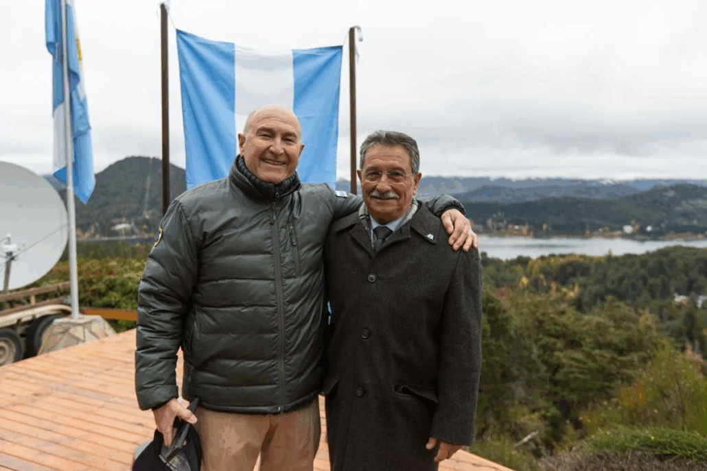 El radarista Carlos Mazzocchi, residente barilochense, junto Carlos Cachón (foto: Matías Garay).